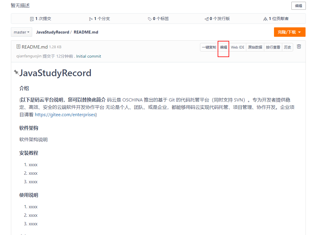 很明显,我们可以利用这个文件来介绍我们的仓库。那么我们开始修改其中的内容。