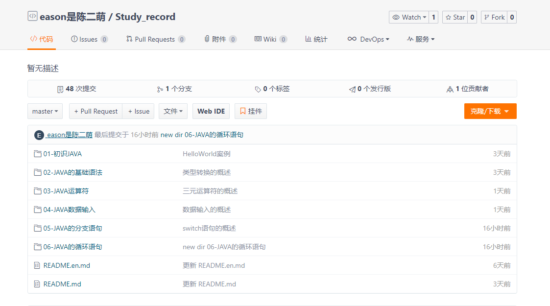 2. 新建文件夹放置自己的学习内容并上传到码云