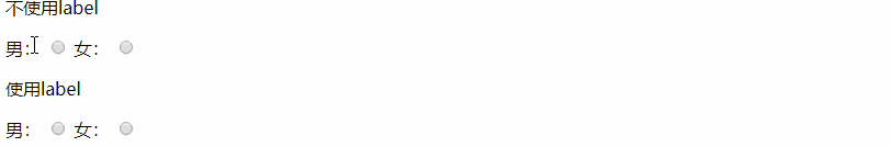 功能概述:label 标签可以实现对 input 元素定义标注(标记)。通过 label 标签将 input 元素前的文字包裹起来,再将 label 标签中 for 属性值与 input 元素中的 id 属性值对应,此时点击 input 元素前的文本可以使 input 元素获得焦点。