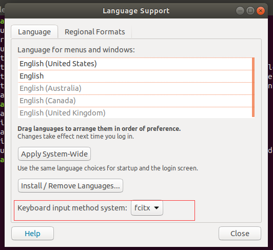 通过上面的步骤,我们的Fcitx输入法框架已经安装好了,但是ubuntu的默认输入法系统为自带的IBUS,其对中文的支持不太好,我们将其切换到 Fcitx。