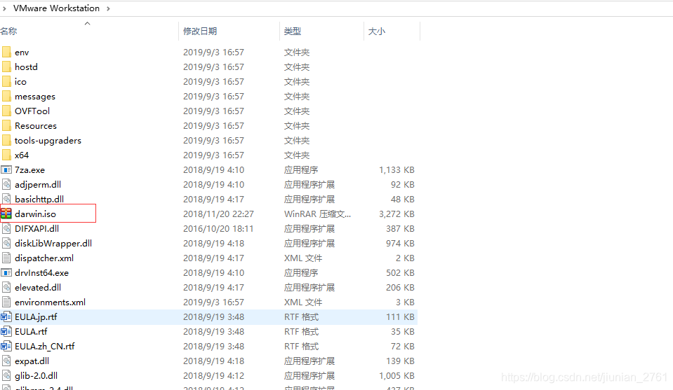 下载下来是一个压缩文件,逐级打开压缩文件,在payload目录中可以找到darwin.iso文件,将其解压并放到VMware的安装根目录,也就是上文图片中的位置。